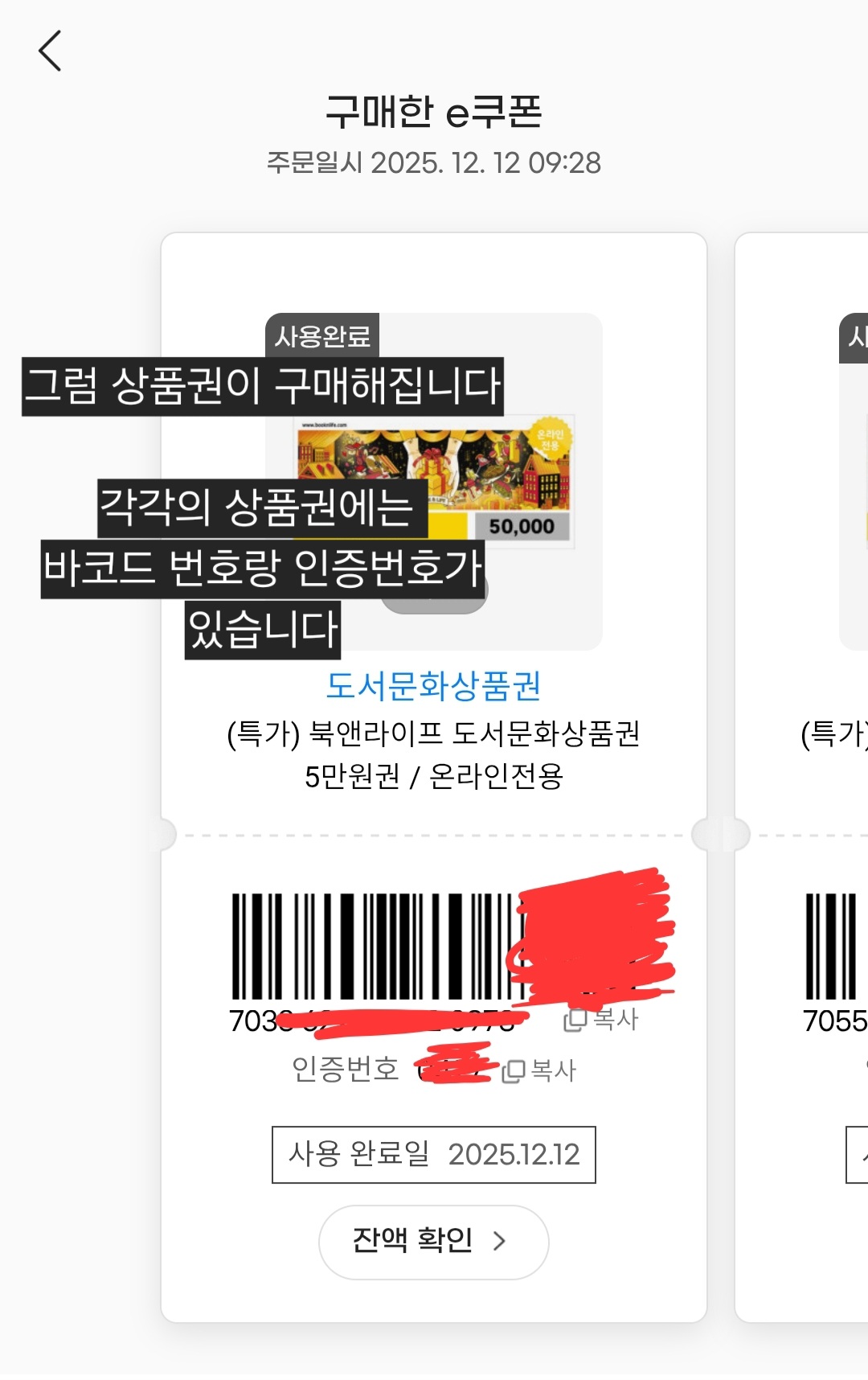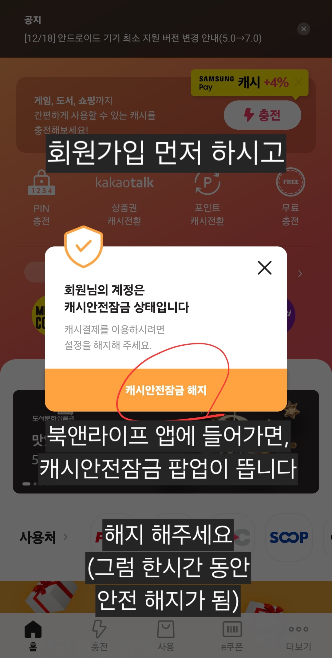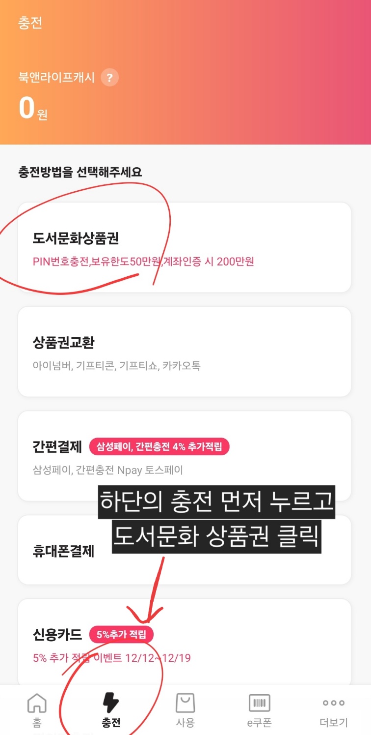 🔹️2-1번) 북앤라이프 앱을 깔아요(북앤라이프 상품권을 앱에 등록)