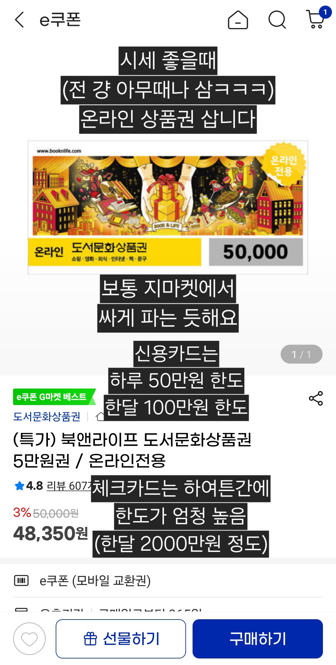 2️⃣근데 구매한 상품권이 필요없다 -> 그럼 상품권을 현금으로 바꾼다 (이과정에서 교환 수수료는 조금 나간다)