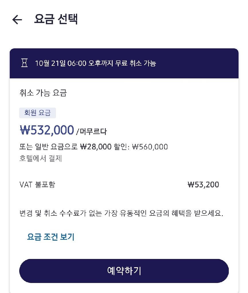25년10월22일 페어몬트 여의도 1박입니다.