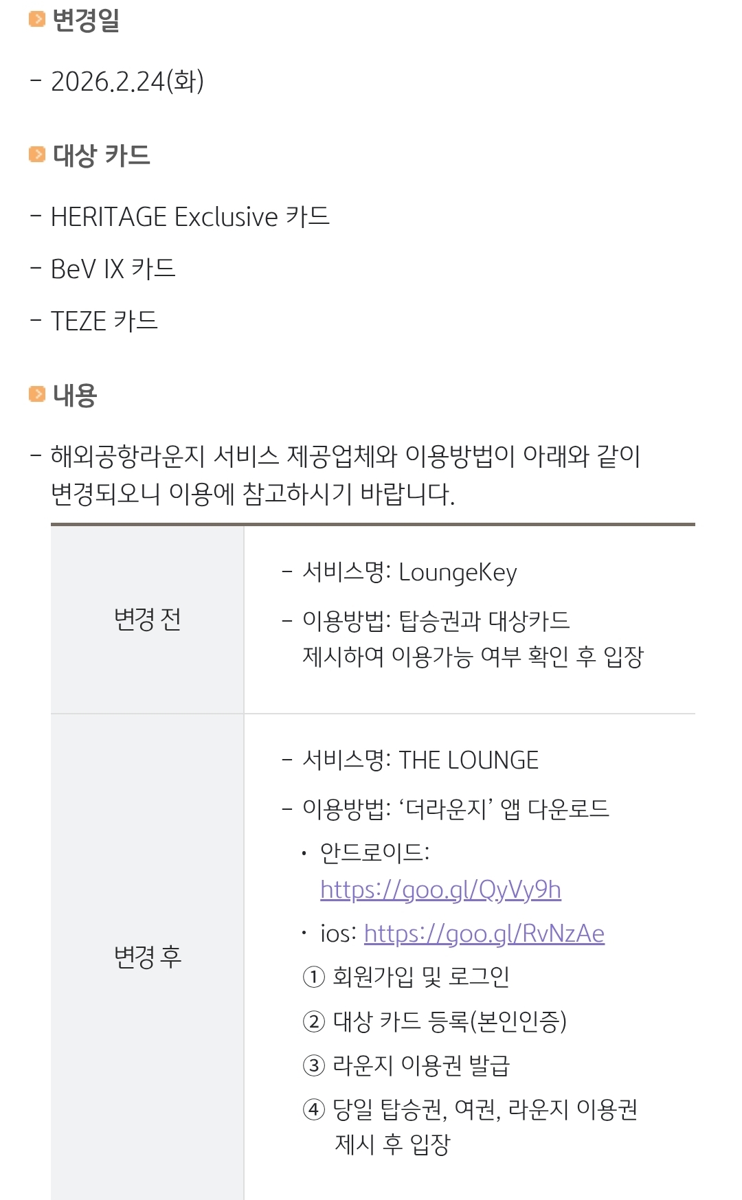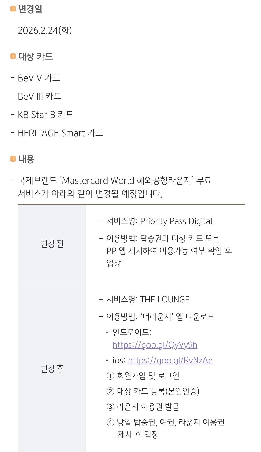 적립/카드 혜택 게시판 kb카드 공항라운지 개악개악 2026. 1. 23. 오전 4:55:05 | 32 | 1 | 0 jini pp와 라운지키가전부 다 라운지멤버스로 변경됩니다.이제 남은 pp는 에블라,퍼플인가요?!