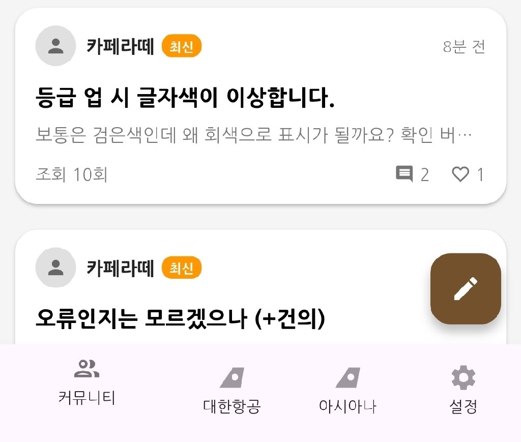 커뮤니티만 위로 올라가있는...
