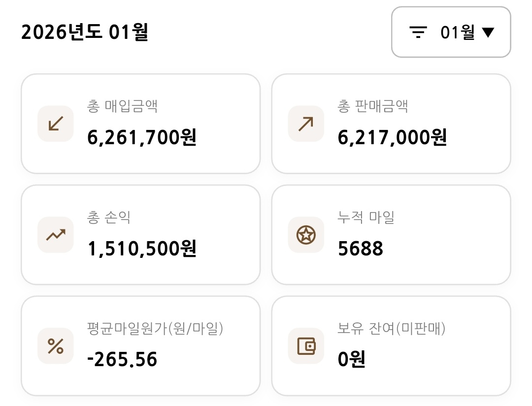 오류 신고 게시판 오잉님의 상품권 제보 2026. 1. 2. 오후 3:01:44 | 46 | 4 | 2 마일캐치 @마일캐치/모든항공사 매입가격을 최초에 잘못 넣었다 수정하면 손익에 반영이 안되는 것 같습니다 ㅜㅜ