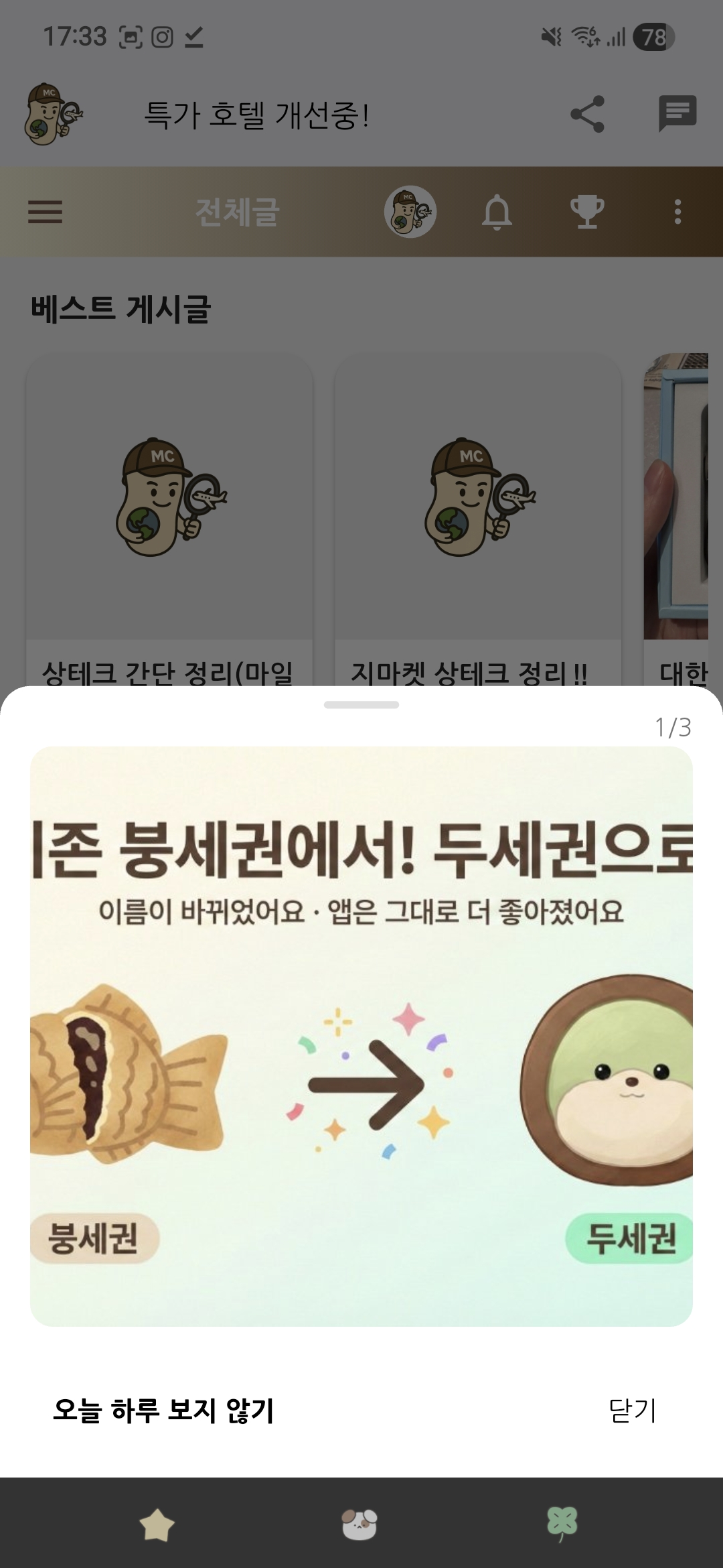 오류 신고 게시판 다음 업데이트 준비사항 2026. 2. 3. 오전 8:34:11 | 53 | 5 | 4 마일캐치 1. 광고 사진 잘리는 이슈 수정1.1 광고 넘어가는 시간 너무 빠름 최소 5초 이상2. 핫딜 링크 올릴때 제휴 업체 연결3. 우현 우천 상품권 정보 업데이트