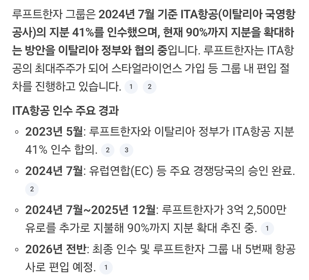 2. 루프트한자-ITA항공 인수 추진중 + ITA항공 스얼 추진중