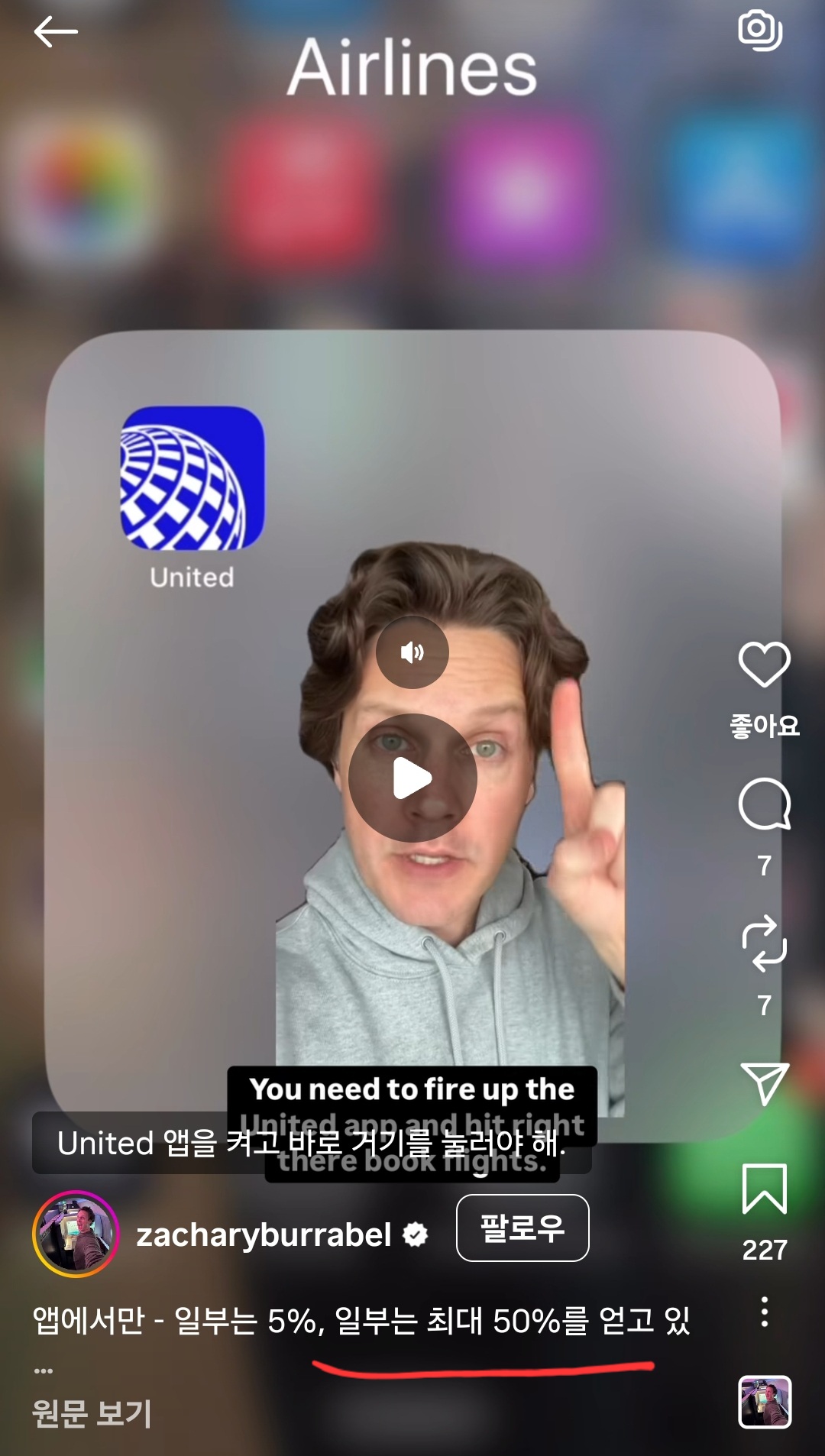 유나이티드 항공에서는 18~23세의 대학생에게는 5%할인을 넣어주는데 (학생 명의로 아이디 만들어서 유나이티드 '앱'에서만 할인이 뜹니다! - 컴퓨터 검색 X )