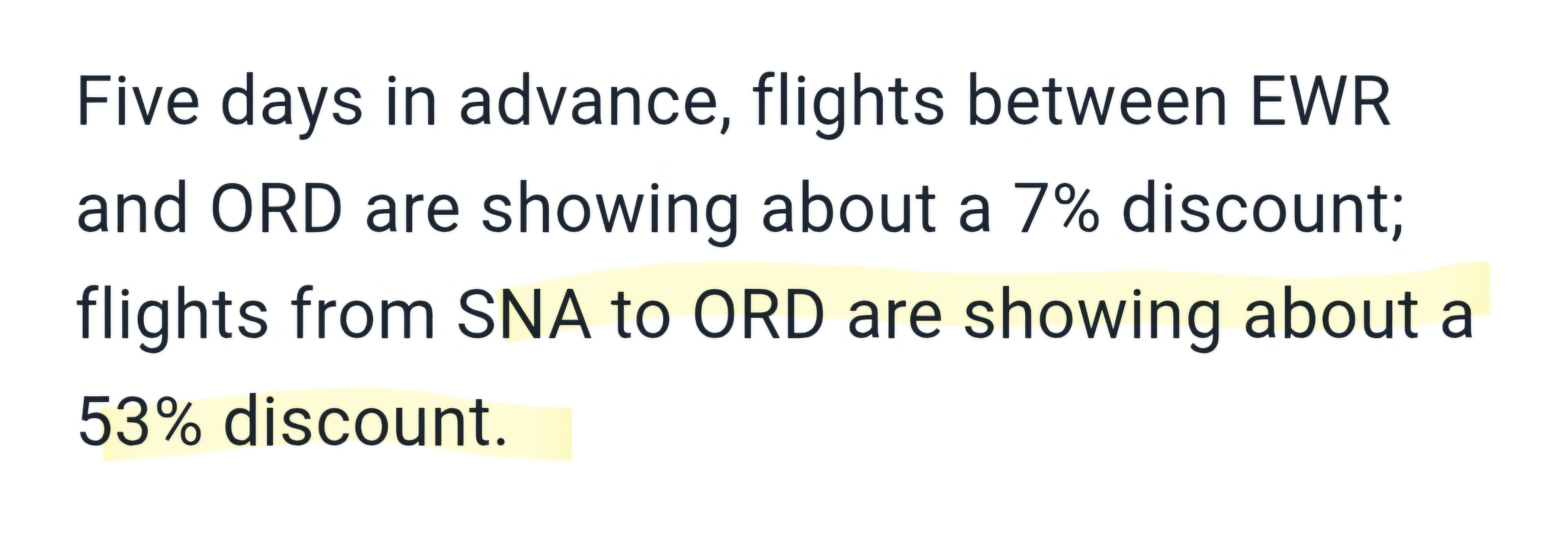 날짜가 임박하거나 특정 노선(미국 국내선만 가능한건지 잘 모르겠음ㅠ)에만 할인률이 크고, 노선마다 할인률이 다르다는 주장입니다.