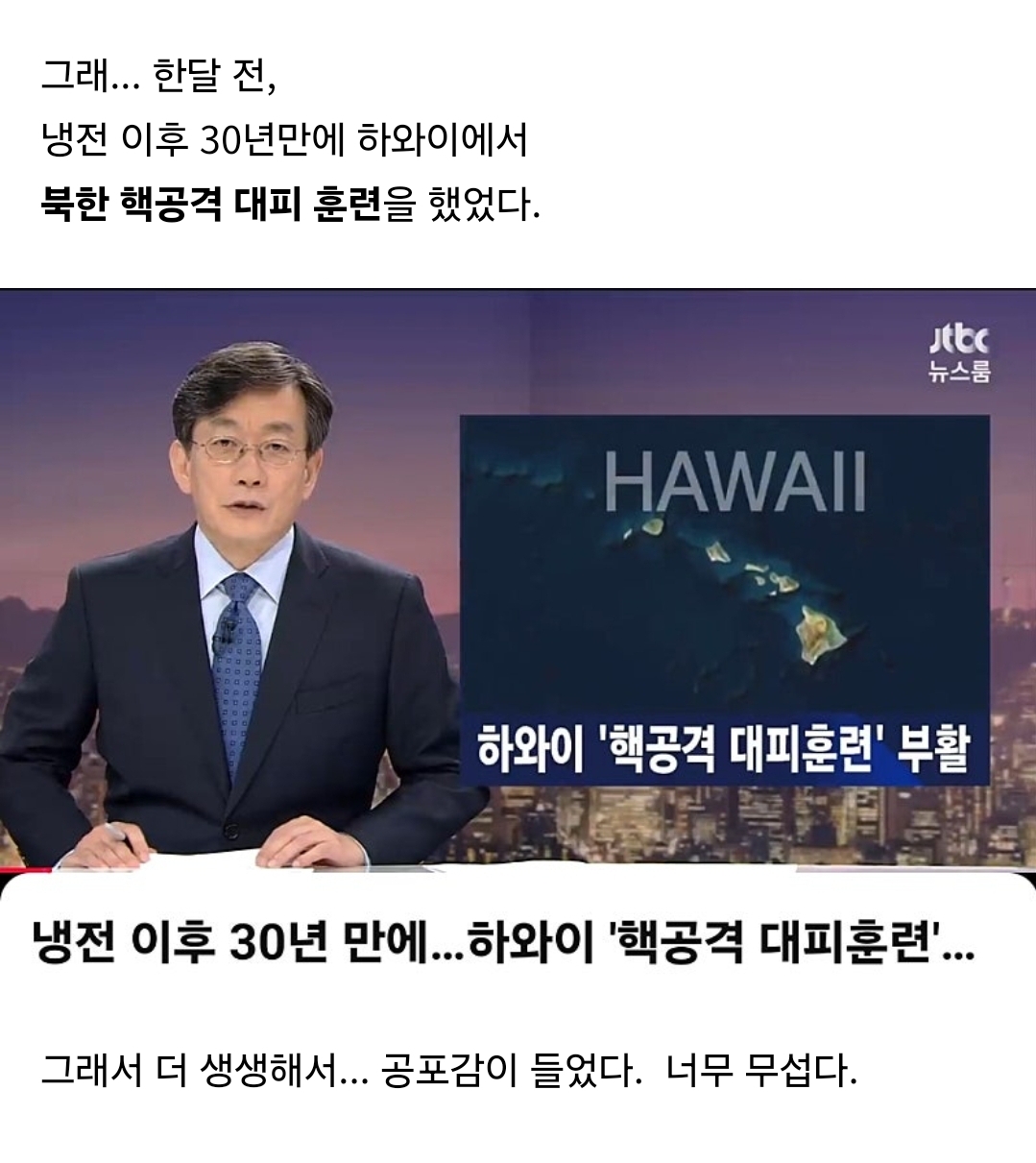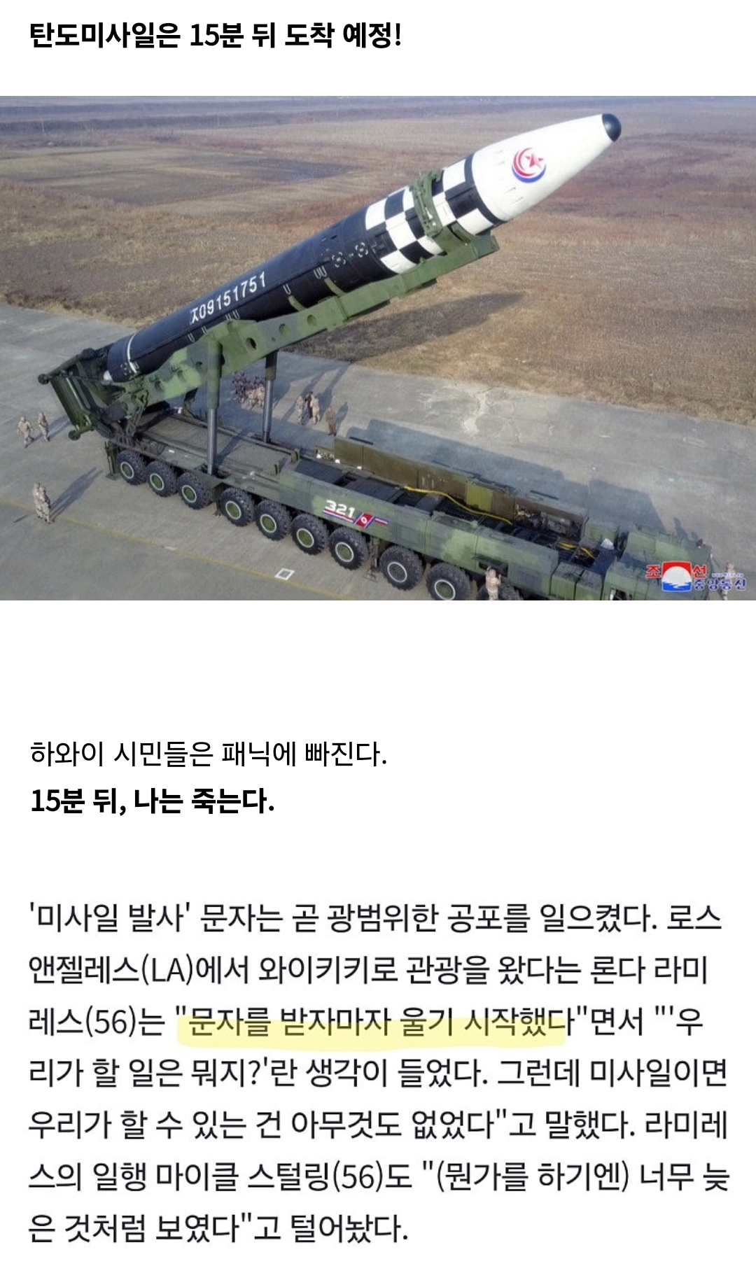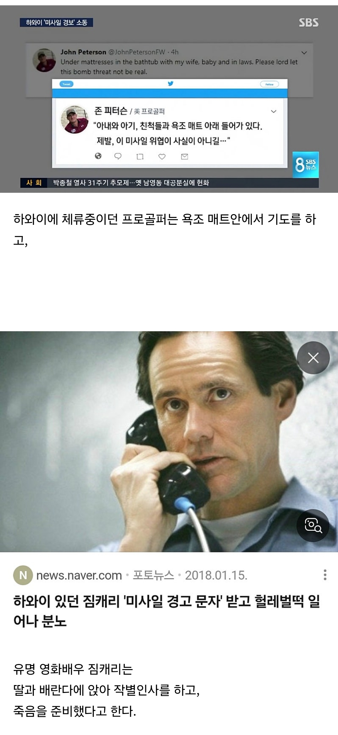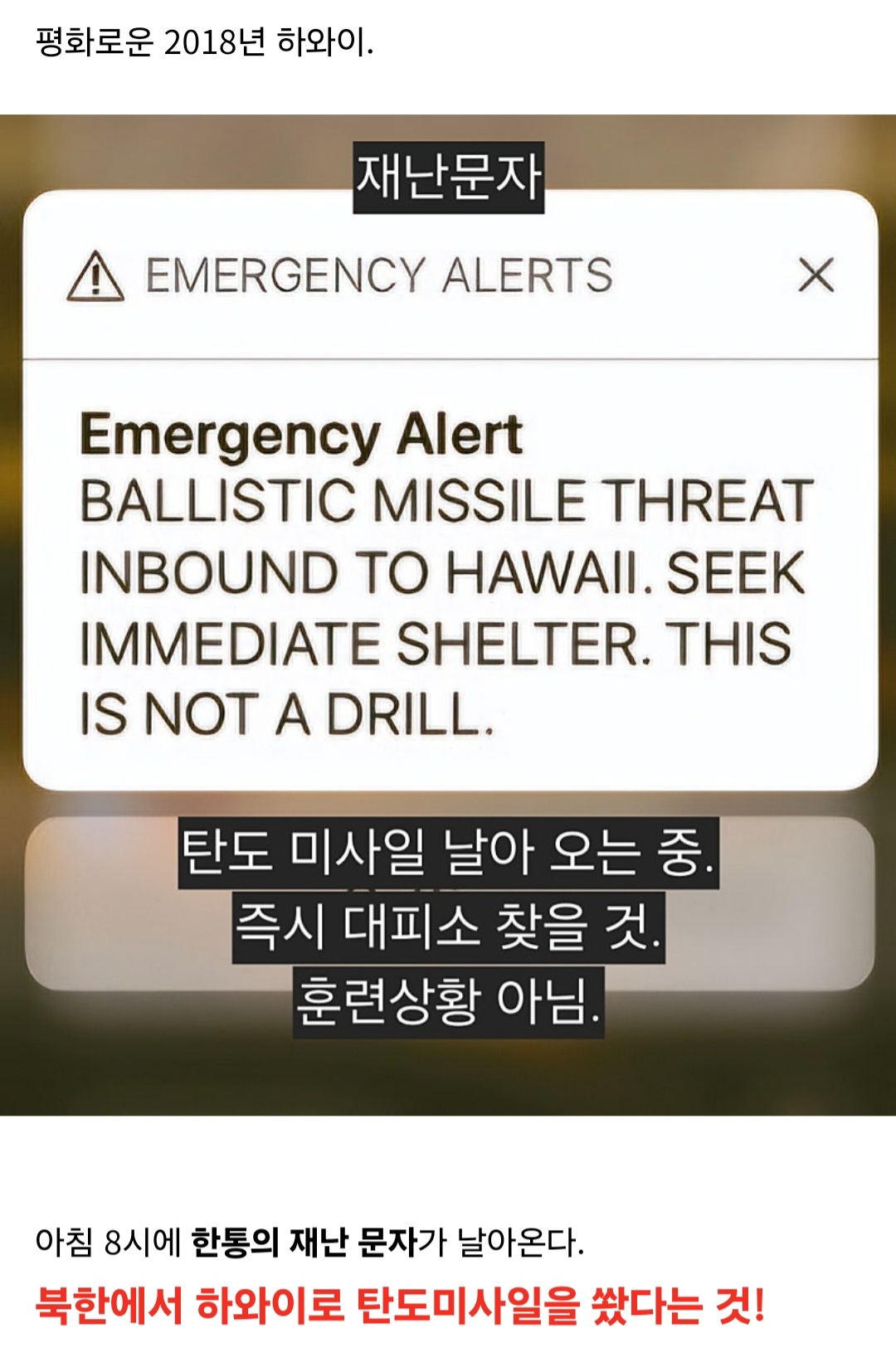 (18년도 사건) 재난경보 - 탄도미사일 날아오는 중. 훈련 아님. - 1탄