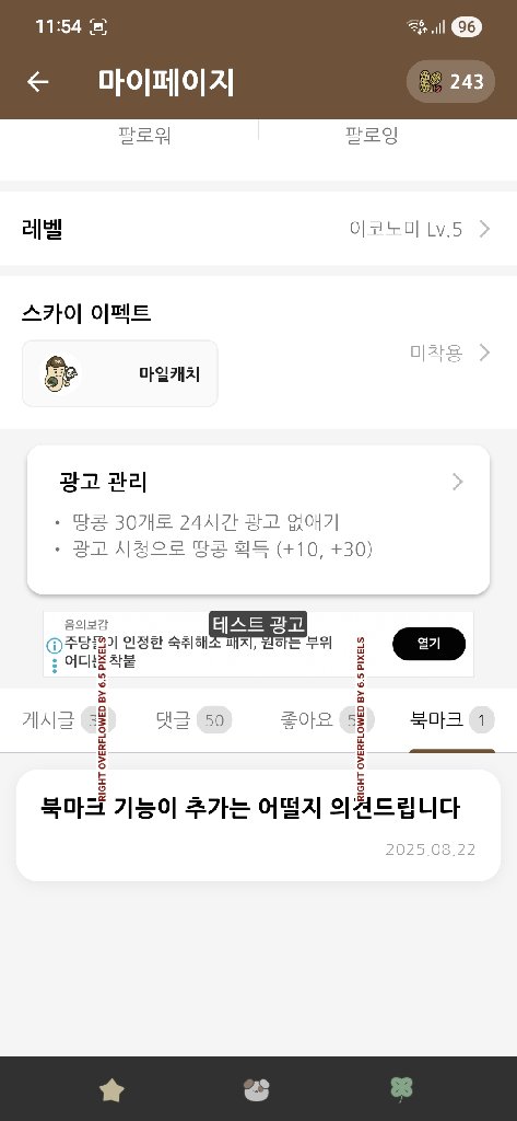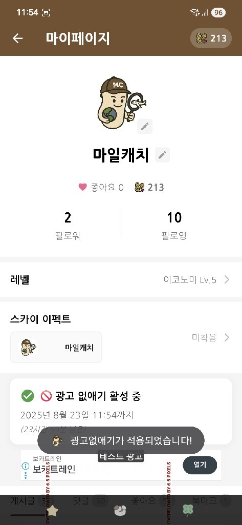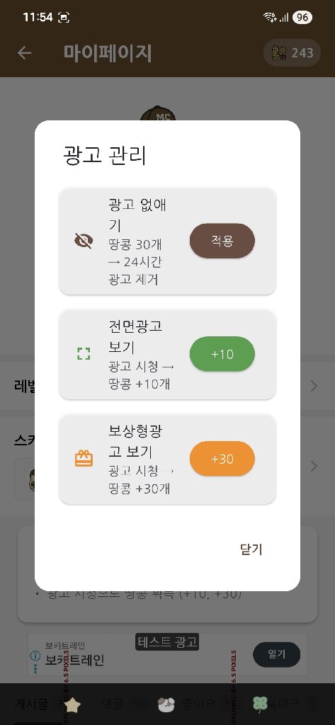 마이페이지에서 광고 시청을 통해 추가 땅콩도 획득 가능합니다.