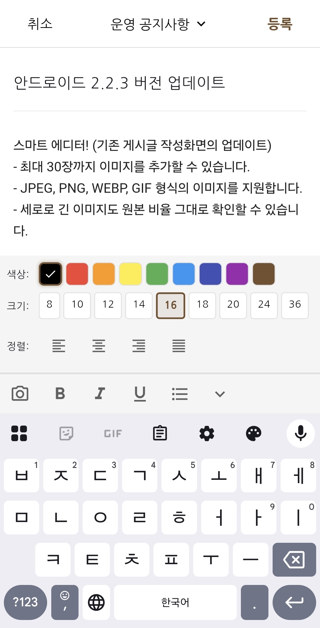 스마트 에디터! (기존 게시글 작성화면의 업데이트)