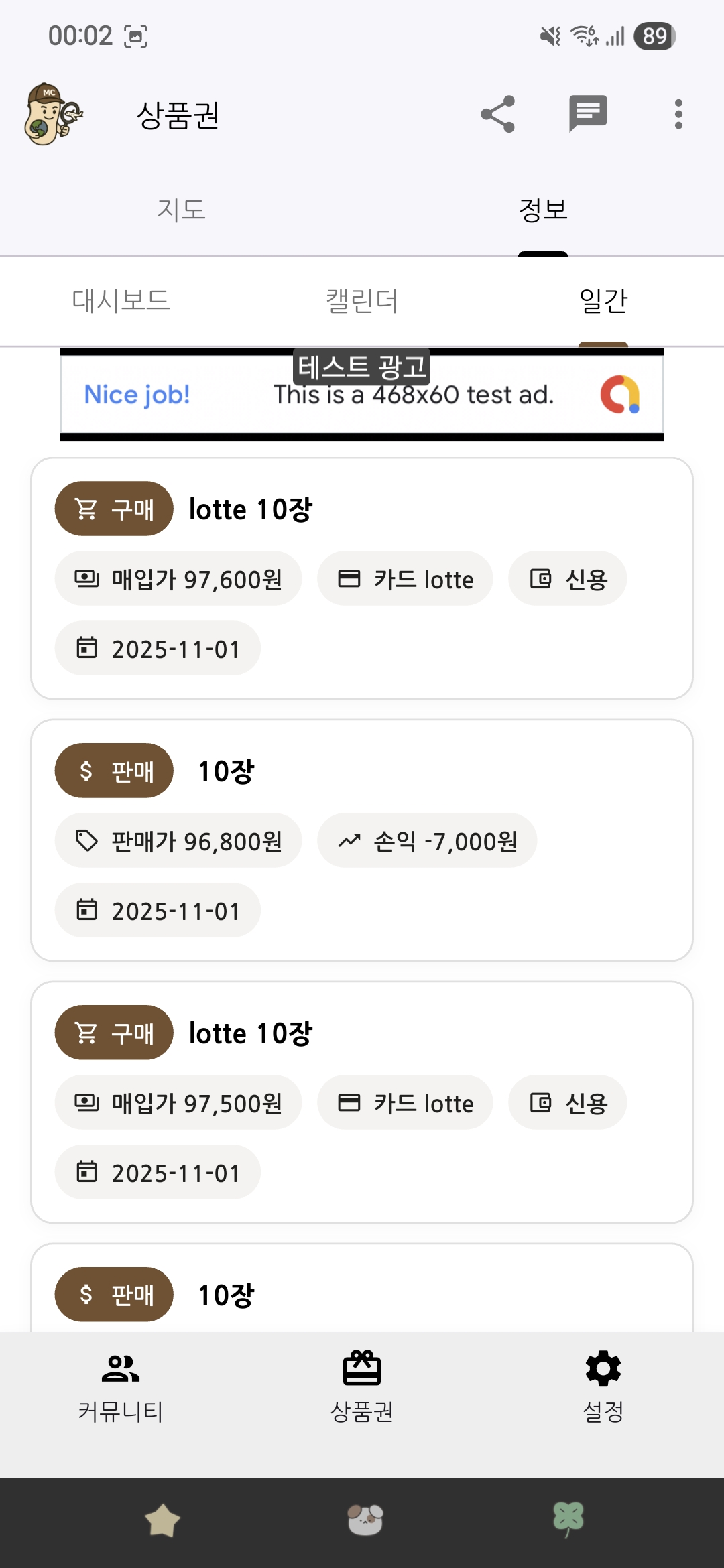 4. 각 상품권 탭마다 광고 추가