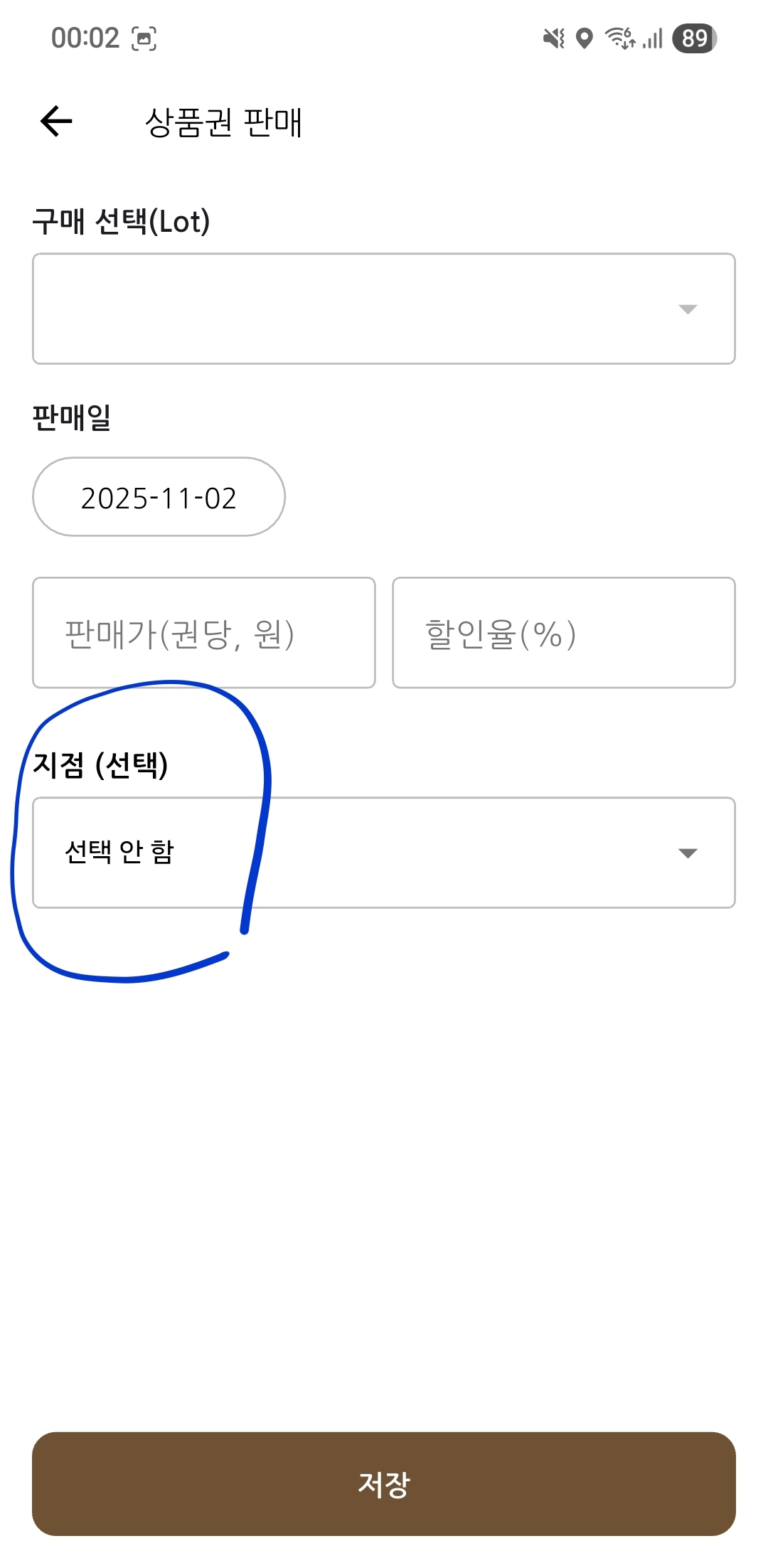 6. 상품권 판매시 지점 등록 기능 추가