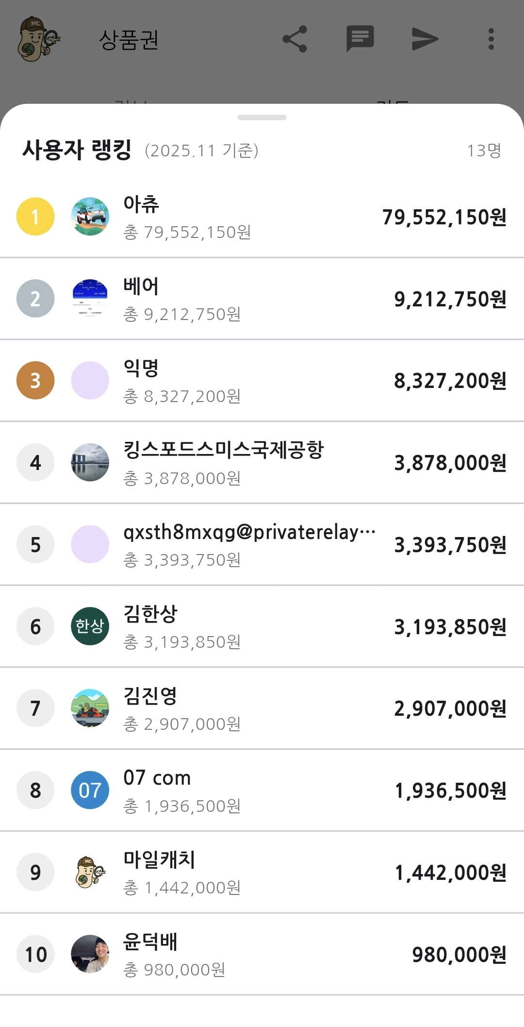 π 2025λ 11μ λ§μΌμΊμΉ μ¬μ©μ λνΉ TOP 3 λ°ν!