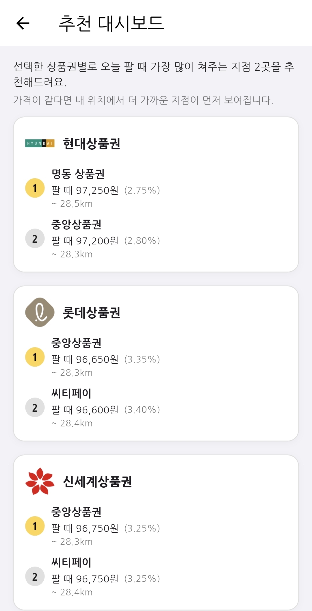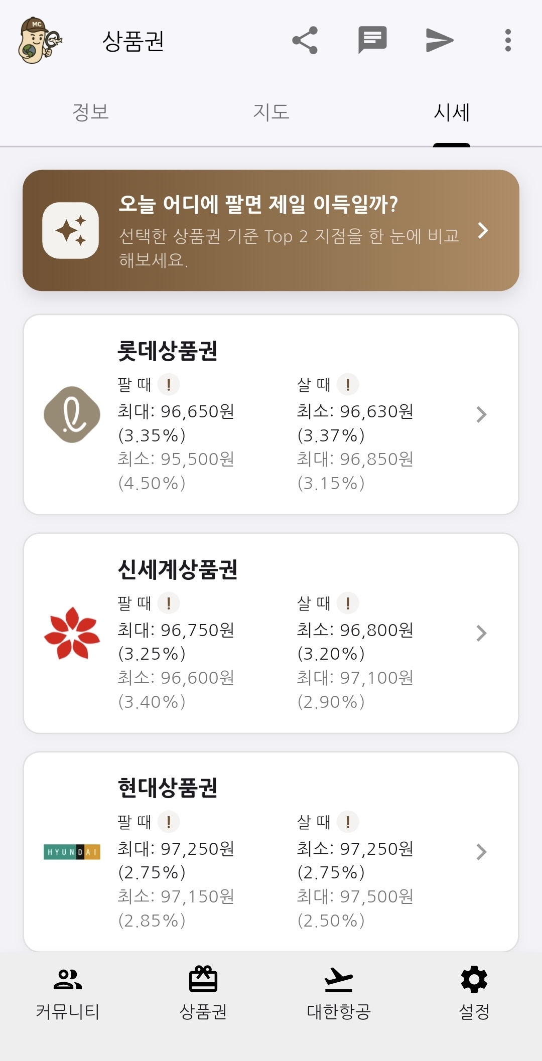 운영 공지사항 안드로이드/아이폰 2.2.21 버전 업데이트 2025. 12. 4. 오후 3:03:15 | 30 | 5 | 0 마일캐치 1. 홈 화면 카테고리 레벨 표시 및 등급 이동2. 상품권 시세 할인율 첫페이지, 추천 대시보드3. 상품권 시세 할인율 오류 수정