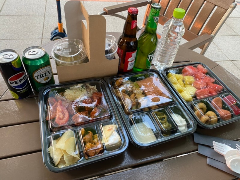 이정도 가지고 와서 객실 말고 야외에서 먹었어요.