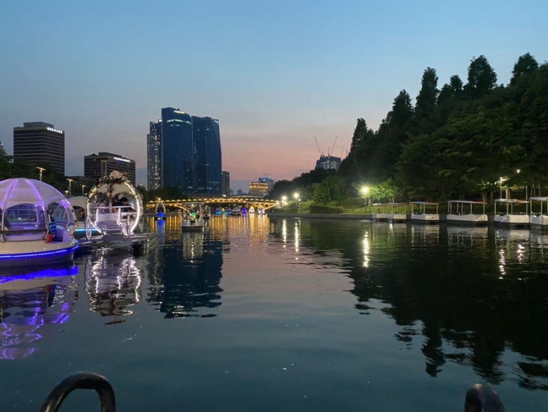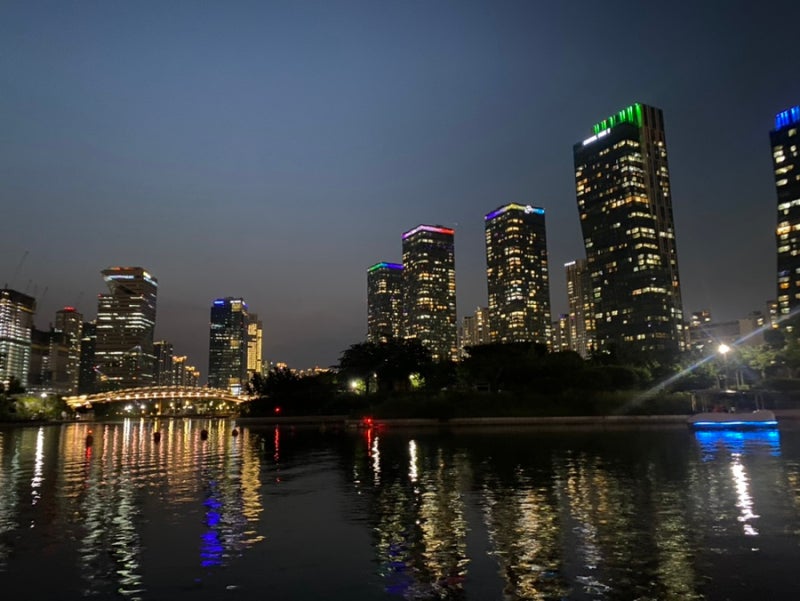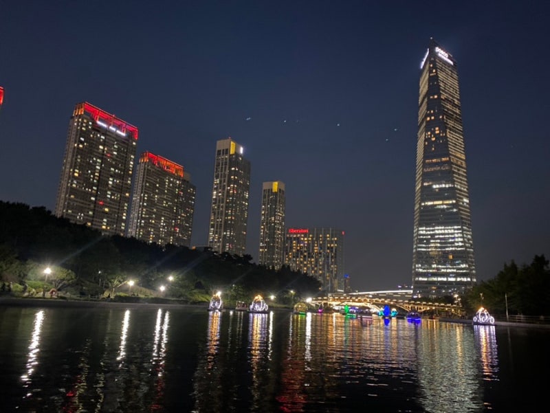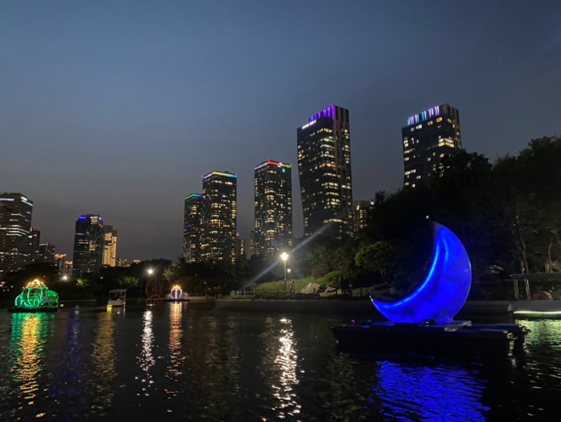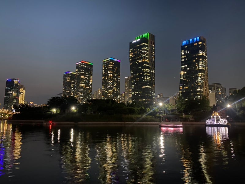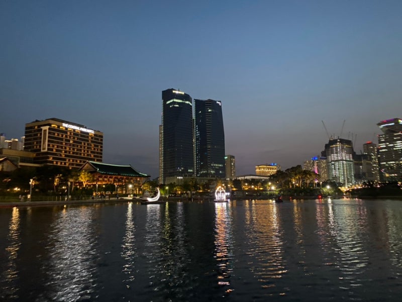 바로 옆 송도 센트럴파크에서도 문보트를 탈 수 있네요. 얼마 전에 금빛수로에서 못탄게 내심 아쉬웠는데 물론 야간이라 문보트는 마감됐네요. 그래도 문보트 타는 것보다 다른 분꺼 구경하는게 더 예쁘네요.
