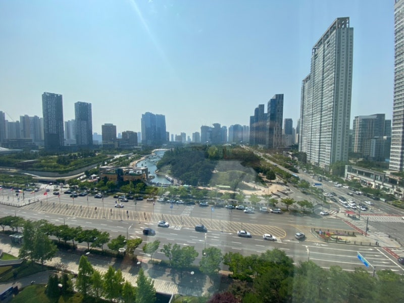 홍콩 센트럴 야경이나 와이탄 야경보다는 빌딩 숲이 덜하지만 맑은 하늘이라서 더 예쁘게 느껴졌어요. 인천 송도 쉐라톤 호텔 묵으신다면 송도 센트럴파크 한바퀴 산책하는거 추천드려요.