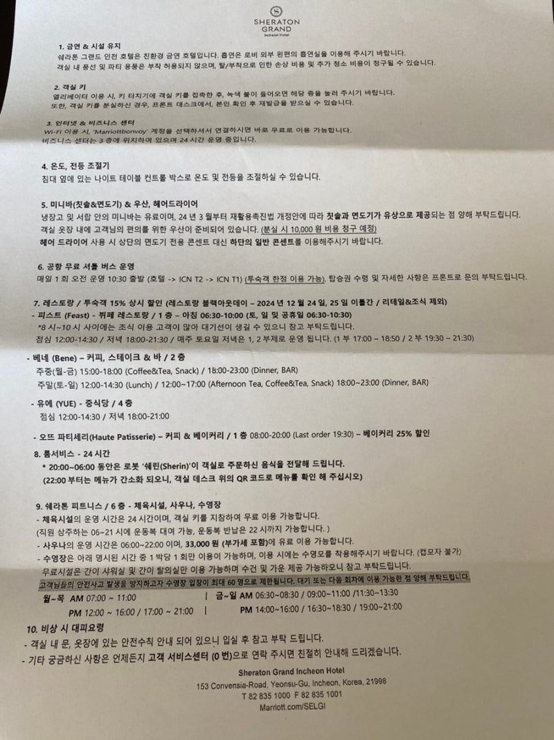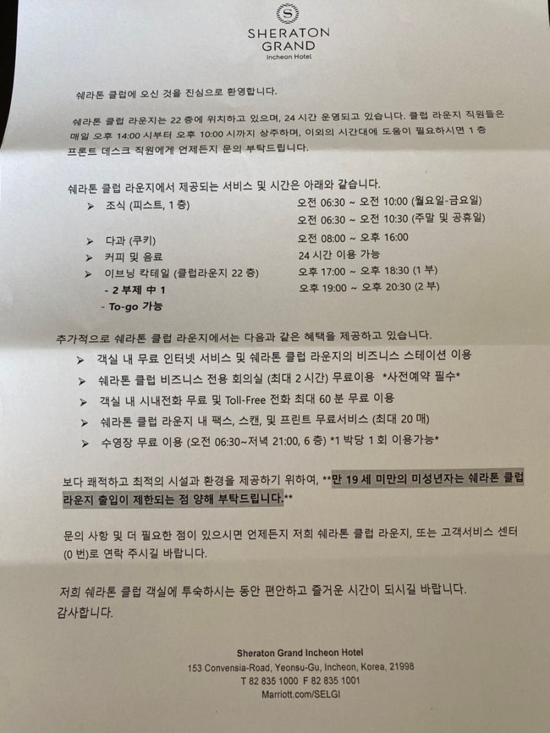 01 인천 송도 쉐라톤 호텔, 주소 영업시간 전화번호