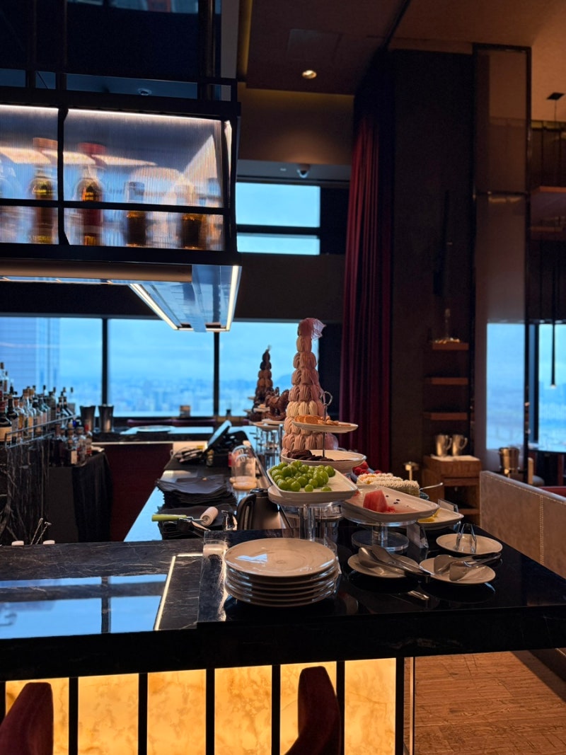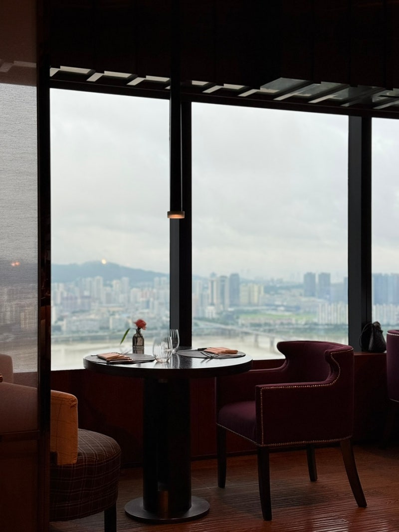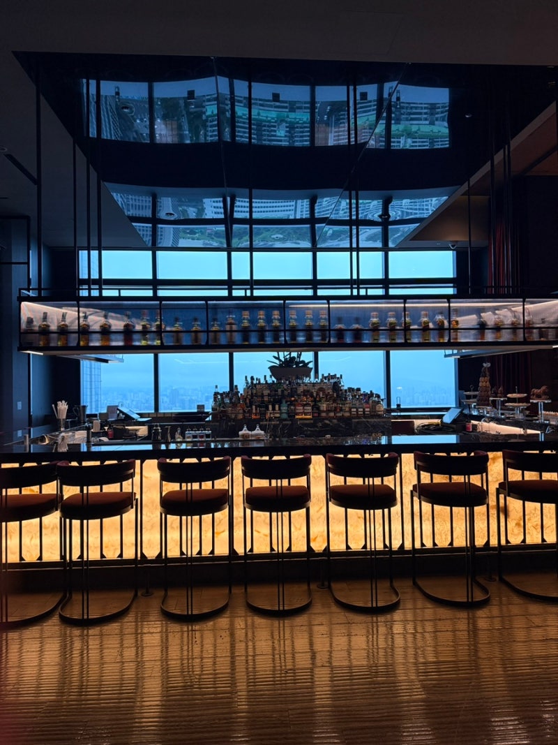 37층 엘베문 열리면 짜자잔 바 공간이 똭 나옴, 그리고 보이는 37층의 한강뷰