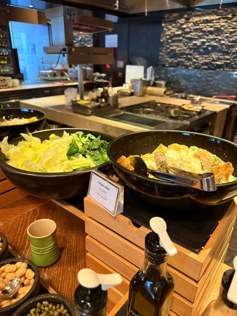 샐러드 코너도 다양한 오일과 토핑이 있어서 트러플 오일 왕창 뿌려먹음