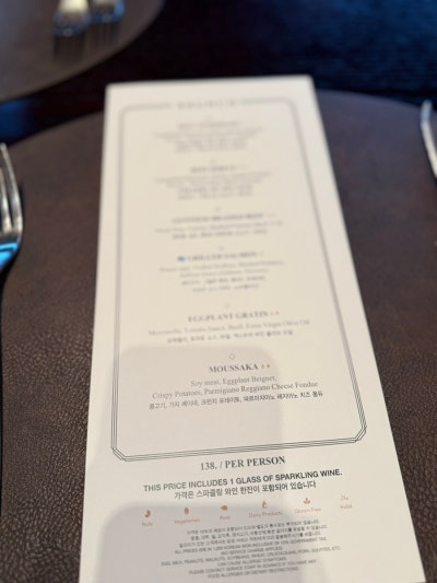 그리고 이 가격이 혜자로운게 스파클링 1잔이 포함된 가격 + 디저트 + 커피까지 포함되어 있음