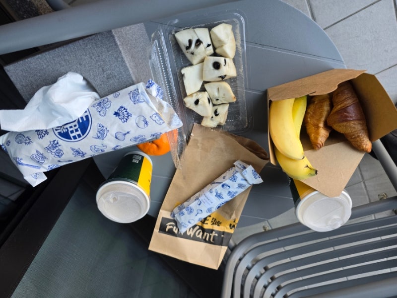 전날 사온 과일과 호텔근처사온 딴빙