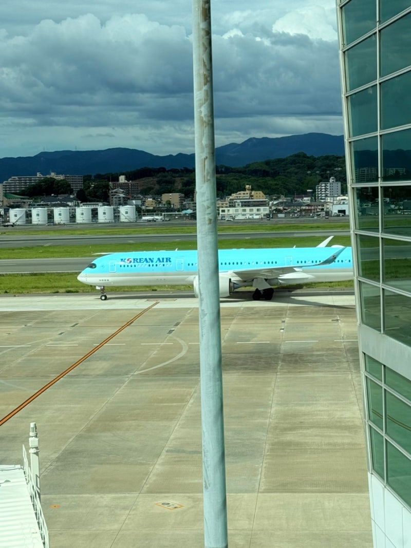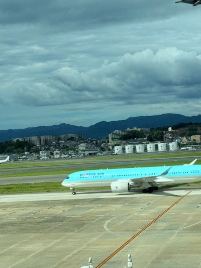 후쿠오카 공항에서 날씨로 인해 이륙허가가 안나서 10분정도 더 대기하겠습니다 라고..