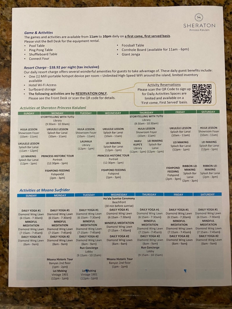 하와이 호텔비용이 적은 편은 아닌데 메리어트 본보이 포숙으로 이용 가능한 호텔이고 포인트 비용도 저렴해서 나름 만족한 호텔. 하지만 조식이나 리조트 요금은 좀 아쉬운 부분이었어요. 차량 렌트하면 차량 주차비도 받는다고 하니 세금이 무시무시한 미국이네요.
