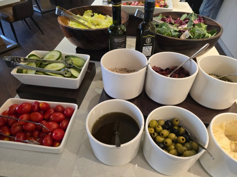 옆으로는 오이와 방울토마토 그리고 올리브 등이 준비되어 있어요