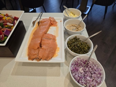 콜드푸드 쪽에는 훈제오리샐러드와 연어는 저번하고 동일했어요