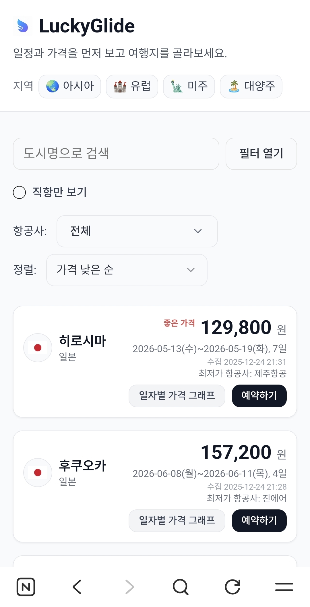 건의사항 게시판 하이요님의 특가 항공권 2025. 12. 24. 오후 4:31:28 | 40 | 3 | 4 마일캐치 현재 트립닷컴과 아고다 기능 제휴(에필리에이트) 진행중입니다.협의가 완료되면하이요님의 의견과 같이 위와 같은 기능을 지원해보겠습니다.항공권부터 시작하여 호텔까지!