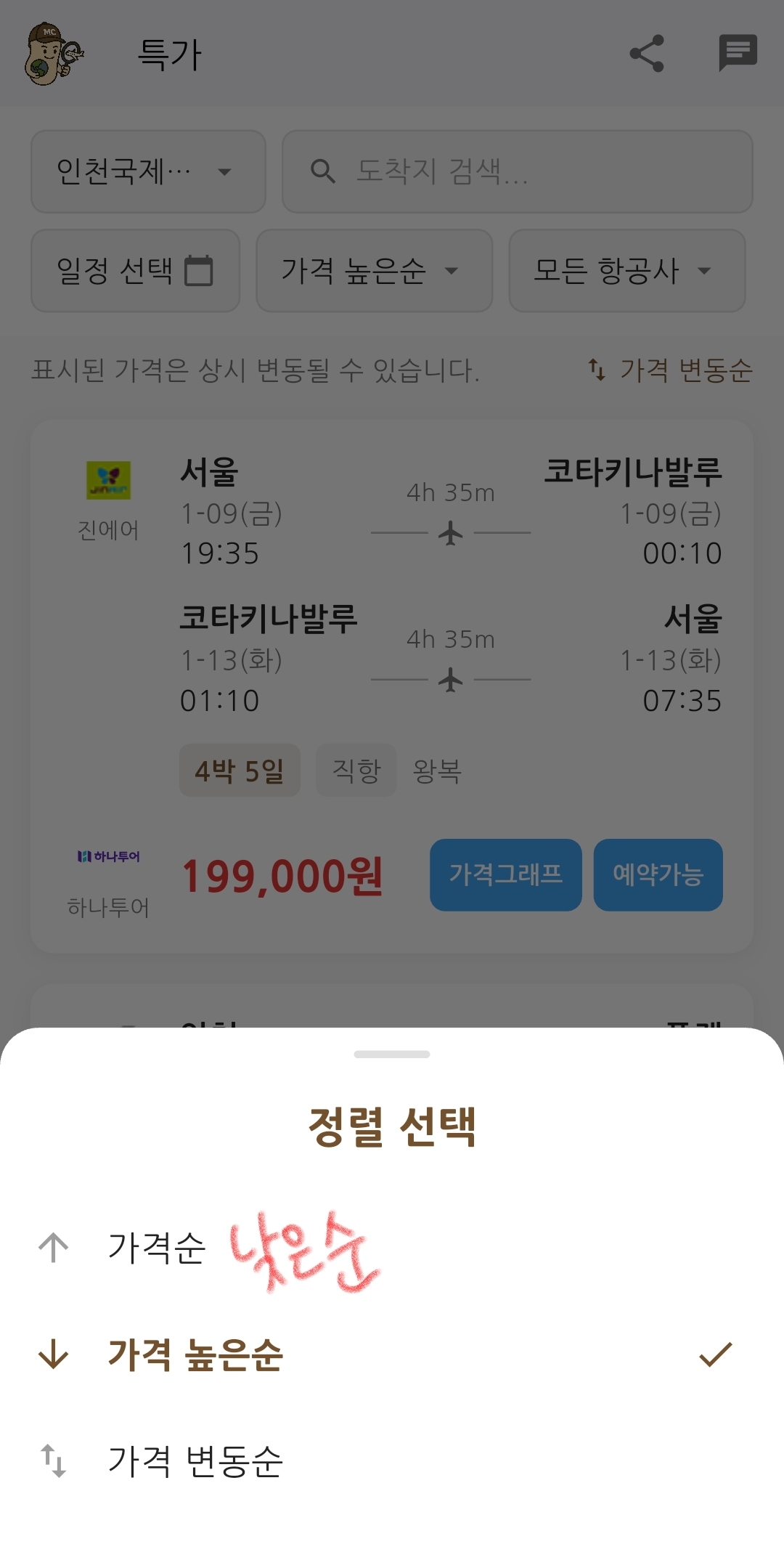 건의사항 게시판 항공권 특가 수정필요 사항 2026. 1. 3. 오후 12:43:17 | 47 | 1 | 5 하잉이 1. 가격 정렬문구에 가격 '낮은순'이 빠졋어용2. 가격 정렬 방법 바꾸면, 2번 사진 빨간동그라미도 같이 연동이 되면 좋겟구!! 3. 가격 정렬을 바꾸고, 새로고침해야 순서 변동이 되던데 바로 변동이 되면 좋겟습니당